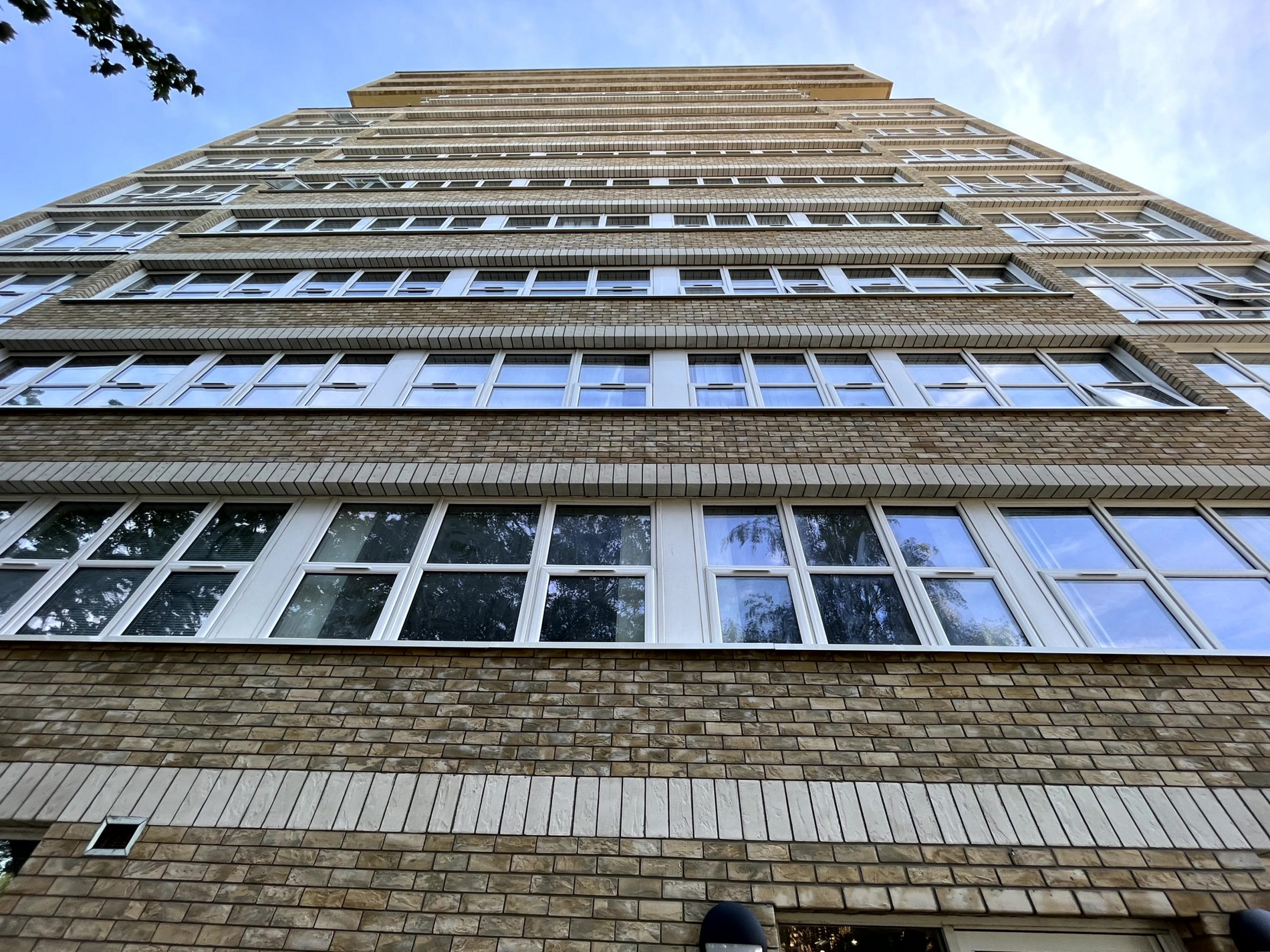 alsecco proposed the Ecomin 400 system with lightweight Meldorfer brick slips but with stone effect larger format slips laid at floor slab areas to maintain the banding that the planners wanted replicating. Having provided a number of colour options, the client opted for a textured buff brick slip for the main wall areas and a white stone slip, laid in soldier courses, for the bands. Upon closer inspection, it became clear that the existing bricks were non-standard in size but alsecco are able to manufacture to any size so this problem was quickly resolved and the brick coursing did not have to alter between floor slabs and windows. A large sample panel in the brick and stone options was made and this went through planning with ease.